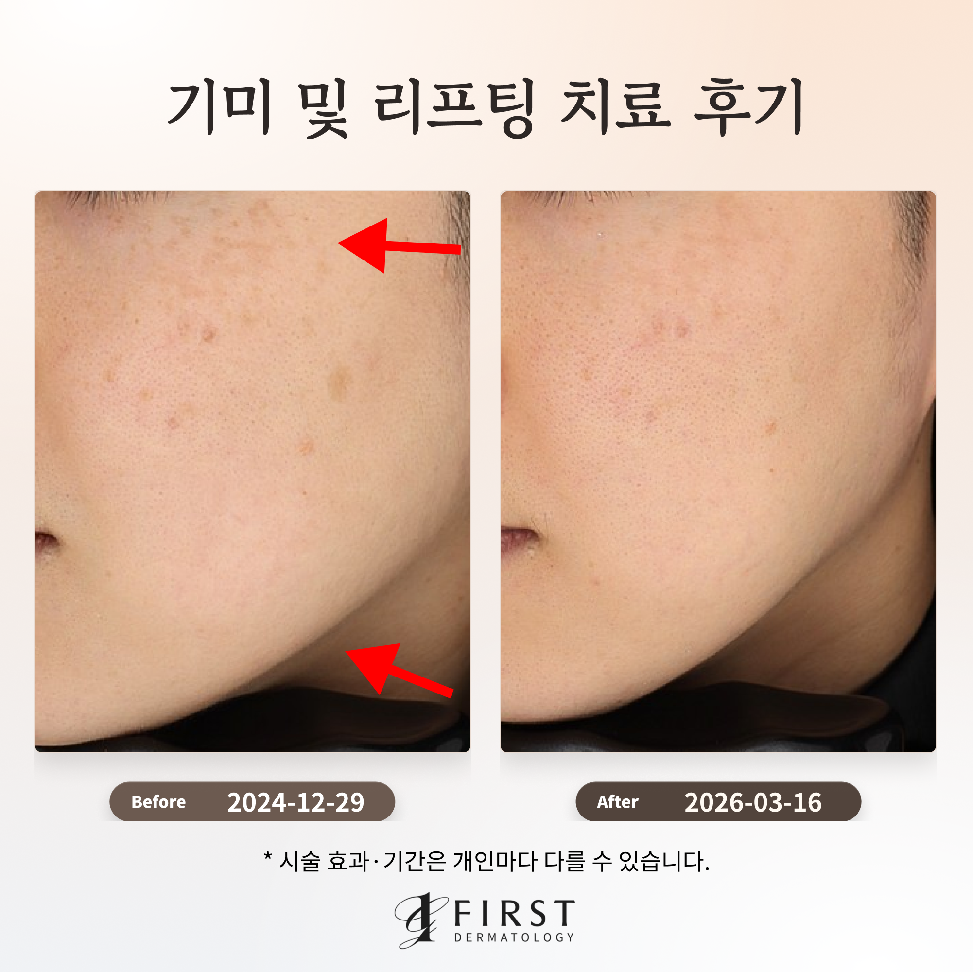 환자분의 전반적인 기미와 칙칙한 피부 톤 개선을 위해 레이저토닝은 멜라닌 색소를 효과적으로 타겟하여 균일한 피부 톤을 유도합니다. 저하된 피부 탄력으로 인한 얼굴 라인 무너짐과 처짐 개선에는 온다 리프팅 시술이 효과적입니다. 온다는 콜라겐 재생을 촉진하여 피부 밀도를 높이고 처진 조직을 타이트닝하여 자연스러운 리프팅 효과를 기대할 수 있습니다. 이 두 시술의 병행은 색소와 탄력 고민을 동시에 해결하여 전반적인 피부 개선에 시너지를 낼 것입니다.