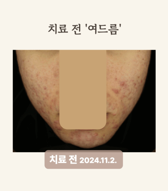 - 홍반: 양볼·턱·이마에 붉은 자국 - 흉터: 깊이 다양한 여드름 흉터 - 민감한 피부 상태