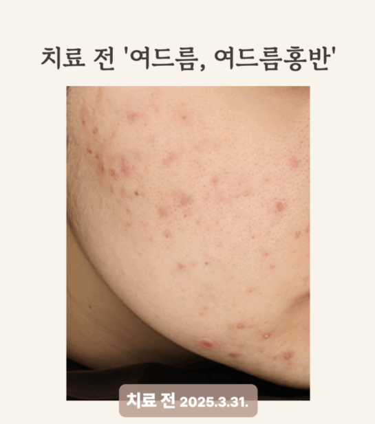 여름철 악화요인(자외선, 땀, 피지) 대비 예방적 치료 계획 필요. 홍반은 혈관 치료를 병행해야 효과적