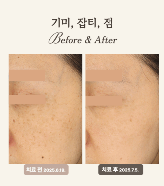 - 기미 옅어지고 피부톤 정돈 - 잡티 개선 및 전반적 맑아짐